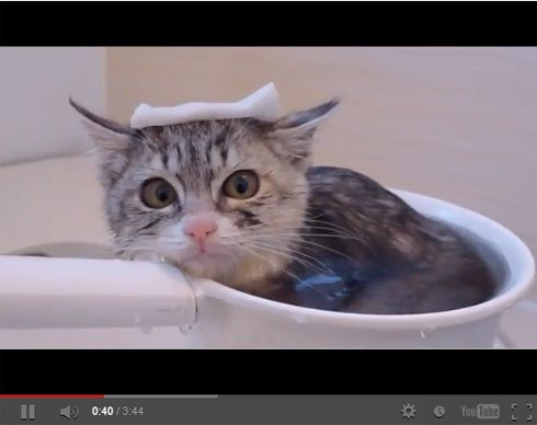 子ネコの名前は花ちゃん。今回の映像は、初めてお風呂に入った時のこと。